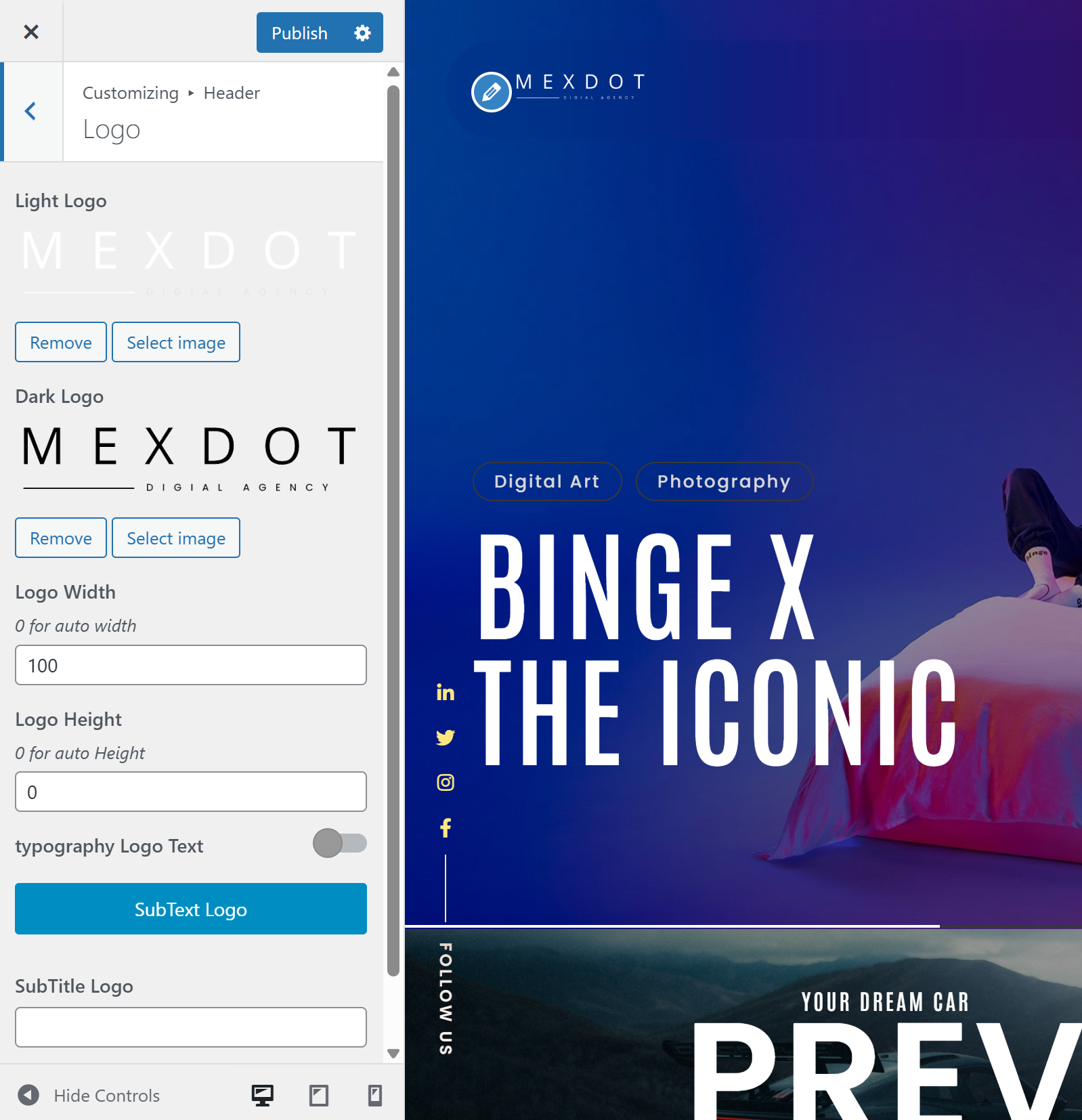 To upload your logo, go to Customizer → Header → Logo You are free to use the