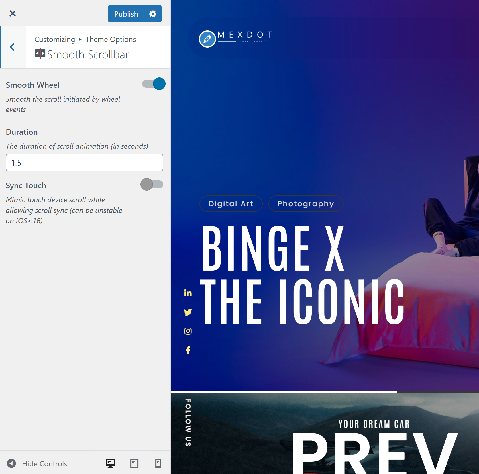 mexdot has built-in smooth scrolling page feature. It replaces native browser’s scrolling with