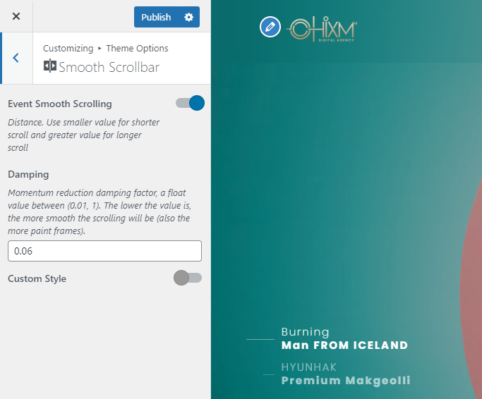 scrolling off. You can do it in Customizer → Theme Options → Smooth Scroll